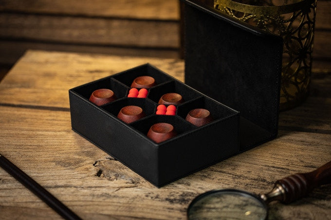 We also made a meticulously crafted custom PU storage case, which functions as a storage case and display case. The case neatly and safely stores all the balls and cups, and displays the uniqueness of your set of Wood Combo Cups and Balls Set more prominently.